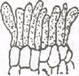 Fig. 3.9. - Rahis din spicul de grau (A) si spiculete prinse de rahis (B): 1 - axa spiculetului