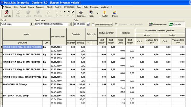 ATENTIE : Cea de-a doua varianta este riscanta, in sensul ca o data generate documentele de diferente, stocurile initiale existente anterior sunt inlocuite cu cantitatile din inventar.