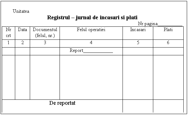 Registrul-jurnal de incasari si plati, se numeroteaza, snuruieste si vezeaza de catre organul fiscal teritorial la inceperea activitatii, anual si la incetarea activitatii si se arhiveaza la agentul economic impreuna cu toate documentele justificative care au stat la baza intocmirii lui.