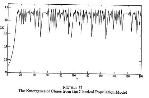 Teoria clasica a cresterii pe care o folosim aici este un teren familiar economistilor. Totusi cititorul trebuie sa fie pregatit pentru cateva surprize: in primul rand natura haosului matematic, dar si abilitatea modelului neliniar de a evolua avand diferite tipuri de comportament trecand dintr-unul in altul fara nici o schimbare corespunzatoare in structura initiala. Doua simulari numerice ilustreaza acest fenomen ca si "miscarile neregulate..retrogradate si progresive ale populatiilor"(Mathus).