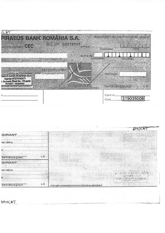 Sursa : PIRAEUS BANK ROMANIA S.A. Agentia Stefanesti