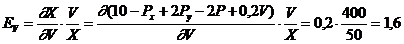 Revenind la ecuatia completa a cererii (4.5.) atunci cand V este 400 u.m., iar X = 50 bucati, elasticitatea venit a cererii se calculeaza astfel:
