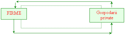 Liniile punctate reprezinta fluxurile de factori de productie dintre gospodarii si firme, respectiv fluxurile de bunuri si servicii dintre firme si gospodarii.