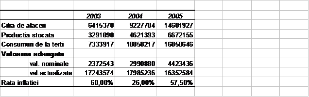 Se observa ca in cazul studiat valoarea adaugata s-a mentinut la un nivel relativ constant in termeni reali.