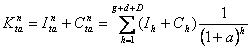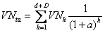 Valoarea neta actuala pentru fiecare an h, pentru h I (d + D), este diferenta dintre volumul anual al veniturilor generate si previzionate la un proiect de investitii Vh si volumul costurilor anuale totale (de investitii si de exploatare), mai putin amortizarea, din anul h (Ih + Ch = Kh):
