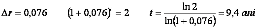 Exemplul 4 : Stiind ca traficul pe o sectie de circulatie creste in medie anual cu 7,6 % . Se cere sa se calculeze dupa cati ani se dubleaza traficul ?