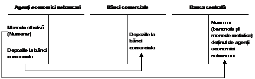 M1 numerar (bancnote si moneda metalica) detinut de agentii economici nebancari; depozite la vedere; Cvasimoneda (depozite la termen); Masa monetara = M1 + Cvasimoneda |