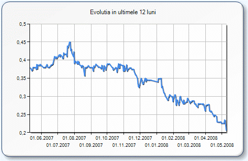 Evolutia cotatiei la bursa pe ultimele 12 luni a