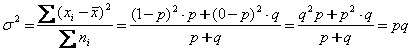 Daca analiza se face din perspectiva feminina, atunci cele 36 unitati ale colectivitatii vor fi prezente in calculele ulterioare ca frecvente ale variantei xF = 1, in timp ce celelalte 44 elemente vor purta varianta xM = 0. In consecinta: