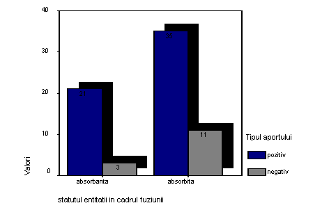 In ceea ce prive te aspectele financiare, aporturile ambelor entita i sunt in majoritatea cazurilor pozitive, iar aportul entita ii absorbante este mai mare. In situa iile mai rare, cand sunt intalnite aporturi negative, aceste aporturi apar in, de regula, entita ii absorbite.