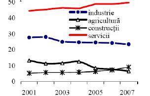 in PIB, pe fundalul unei scaderi a ponderii industriei si agriculturii.
