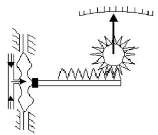 Transmitatorul (o capsula manometrica) se afla in interiorul aparatului indicator, astfel deformarea capsulei produsa de presiunea amestecului carburant este transformata si transmisa la acul indicator printr-un sistem de transformare si transmitere a miscarii (biela-manivela, sector dintat-roata dintata). Deformarea mecanica a capsulei este astfel afisata analogic, la bordul avionului, in unitati de presiune.