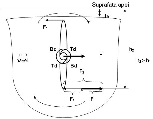 In zona darei de vartejuri formata la pupa navei apare un contracurent care se deplaseaza in sensul de miscare a navei.
