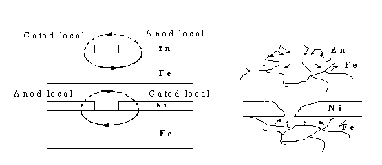 coroziune a fierului sub stratul de protectie de zinc, respectiv nichel