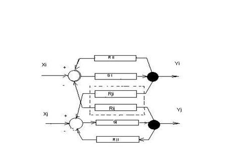 Daca se analizeaza interconexiunea a doua subsisteme de transport se pot evidentia regulatoarele proprii fiecarui sistem Rii , Rjj care caracterizeaza abaterile starilor de iesire Y de la valorile de comanda si regulatoarele Rii , Rjj care realizeaza interconectarea subsistemelor pentru a permite creearea transporturilor combinate, respectiv transferul marfurilor intre subsistemele de transport.