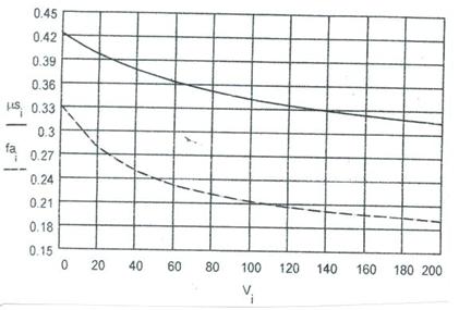se calculeaza pentru diferite viteze de inceput al franarii, V este cuprins intre 0 si