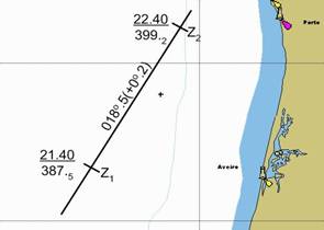 din punctul estimat Z2 astfel determinat, se prelungeste drumul adevarat daca nava nu schimba directia de drum, sau se traseaza noua valoare de drum adevarat, daca nava schimba directia de drum.
