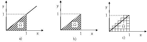 In sistemul de coordonate (x,y) studiul geometriei indica dreapta y=x ca limita intre valorile x0=0 si x1=1 a suprafetei W . Deci: