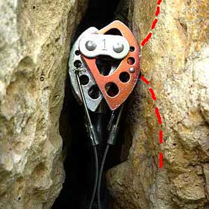 In imaginea din stanga este amplasamentul unui friend Black Diamond C4 #1 intr-o fisura neregulata.