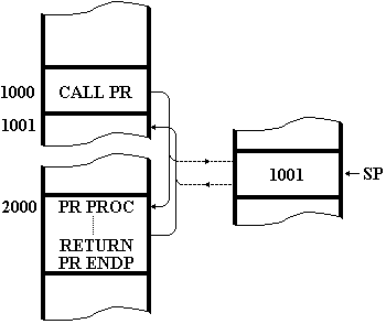 Se pune insa problema revenirii din procedura, la executia unei instructiuni generice RETURN. Controlul trebuie sa revina in programul apelant si sa se execute instructiunea de dupa apelul de procedura.