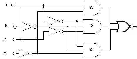 Sa se minimizeze functia : f A+B)*(C'+D) + A'B + A'CD si sa se implementeze cu porti logice de tip SI, SAU, NU, SI-NU, SAU-NU, utilizand un numar minim de porti si circuite integrate.