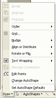 grupari de elemente grafice (se selecteaza toate elementele care se vor gupa tinand apasata tasta Shift si apoi se alege optiunea Group din meniul care apare dupa apasarea butonului Draw );
