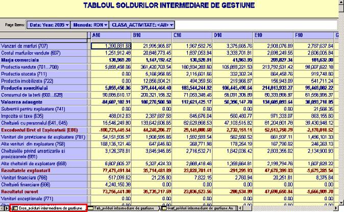 Aceasta operatie va trebui repetata in parte pentru fiecare dintre foile raportului. Deplasarea intre foile raportului se realizeaza din partea de jos a paginii, prin selectarea tab-ului dorit.