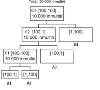 Sa consideram un exemplu extrem de simplu: presupunem ca avem 4 matrice de dimensiuni (100,1), (1,100), (100,1), (1,100). Asadar, n=4 si l=(100,1,100,1,100). Iata trei modalitati de asociere: