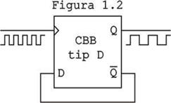 La iesirea oscilatorului se conecteaza un ansamblu de bistabili D (fig. 1.2), care au rolul de a diviza semnalul generat de oscilator, pana la obtinerea unei frecvente de 1 Hz.