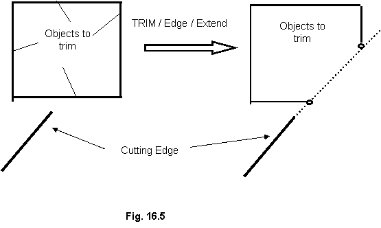 unde: Extend - permite retezarea obiectului pana la o intersectie fictiva, rezultata din prelungirea muchiei taietoare pana la obiect (Fig. 16.5)