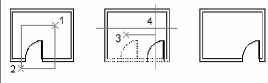 Portiunea de obiect dintre cele doua puncte va fi eliminata. Daca al doilea punct nu se afla pe obiectul selectat, va fi considerat ca punct de intrerupere punctul de pe obiect cel mai apropiat de punctul selectat. Daca se doreste eliminarea unui capat al obiectului selectat (daca are contur deschis) al doilea punct de intrerupere va fi pe capat.