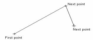 First point-punctul de start al segmentului Next point-punctul final al segmentului Close-inchide un contur poligonal <Enter> - ca raspuns la prompterul Specify first point determina ca punctul de start sa fie punctul final al ultimului segment sau arc desenat <Enter> - ca raspuns la prompterul Specify next point incheie comanda |
