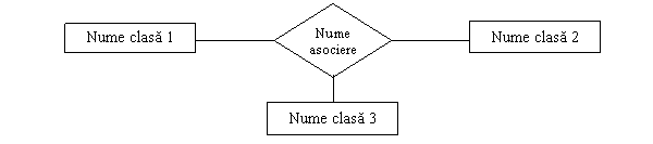 Asocierea ternara, presupune existenta a trei clase de obiecte. In figura 7.14 se prezinta forma generica a unei astfel de asocieri.