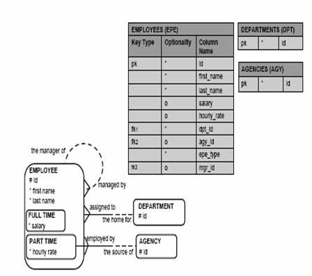 Cheia PRIMARA la la fiecare subtip e la fel a la supertip ;fiecare tabel are optionalitate origina la subtip ;numai o singura cheie secundara e obligatorie,restul fiind optionale pentru ca am o excludere reciproca.