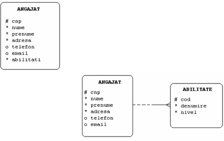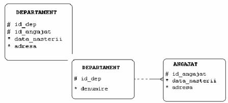 La simbolul romb se fac explicatii procedurale iar cheia straina are prescurtarea numelui tabelei cu care se leaga cea curenta.
