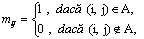 Fie G = (N, A) un digraf cu multimea nodurilor N = si multimea arcelor A = . Matricea de adiacenta asociata digrafului G este matricea M = (mi j)nxn unde