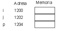 Instructiunea j = *p; copiaza un intreg scurt de la locatia 1200 in j, locatiile de memorie fiind acum ca cele din figura: