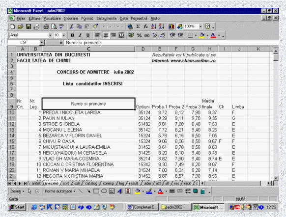 construirea structurii foilor de calcul - antetul coloanelor si liniilor, celulele cu datele de intrare, celulele cu formulele de calcul, acestea in conformitate cu cerintele foilor de calcul; salvarea aplicatiei intr-un fisier pe discul magnetic;