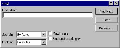 Look in - faceti clic pe elementul foii de lucru care contine informatia pe care doriti sa o cautati (Formulas, Values, Comments).
