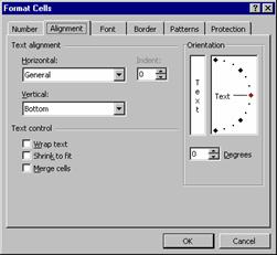 Orientation - Selectati o optiune din Orientation, pentru a modifica orientarea textului in celulele selectate. Optiunile de rotatie nu pot fi disponibile daca sunt selectate alte optiuni de aliniere.