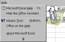 In versiunea Excel 2000 exista un Office Assistant, care poate fi si ascuns (hide), pe care se poate da click atunci cand avem probleme.
