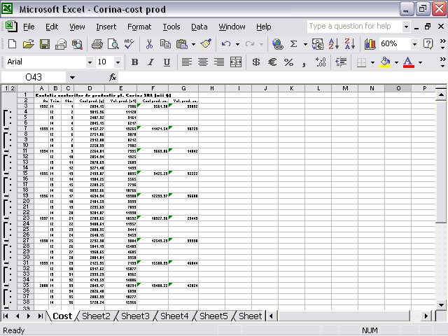 respectiv), cu foile Pret si Comz si legatura OLE de la