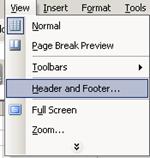 Fig. Apelarea ferestrei Header and Footer din meniul View