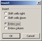 fie se actioneaza butonul dreapta a mouse-ului, de unde se selecteaza optiunea Insert si mai departe, din fereastra noua deschisa, Entire Row (fig. 47, 48).