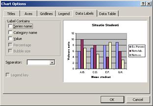Pentru adaugarea unor etichete se foloseste aceeasi fereastra numai ca se selecteaza zona (meniul) Data Labels.