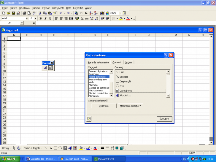 Fereastra de dialog Microsoft Excel Dupa deschiderea unei sesiuni de lucru Microsoft Excel, lucrul cu progra-mul MS-Excel se poate desfasura in functie de versiunea MS-Excel instalata pe PC-ul utilizatorului. In versiunCiteste tot ... 814 cuvinte