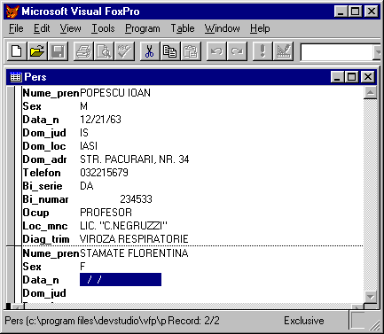 Modificarea structurii unei baze de date Comanda MODIFY STRUCTURE : sintaxa: MODIFY STRUCTURE efect: Permite sa modificam structura bazei de date curente. Pe ecran apare o fereastra cu titlul “Table Designer” (Figura 5.5), similara cu ceCiteste tot ... 263 cuvinte