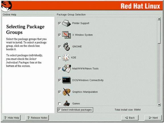 Pentru instalarea unui server de Linux, prima conditie pe catre trebuie sa o indeplineasca acesta este sa fie foarte sigur, un sistem cat se poate de securizat. In ecranul in care se cere selectarea pachetelor care se doresc instalate (Selecting Package Groups), in cazul nostru fiind vorba de un server de retea, TREBUIE SA DESELECTAM ABSOLUT TOT din lista disponibila de pachete.