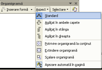Puteti modifica si structura schemei organizatorice cu ajutorul optiunilor existente meniul Layout (Aspect)