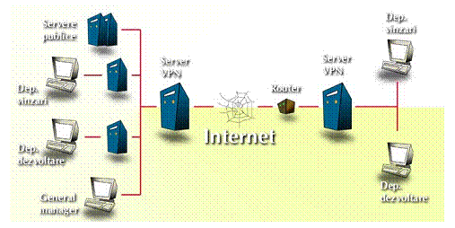 remote-acces VPN - retea virtuala privata intre reteaua firmei si angajatii aflati la distanta sau in deplasare